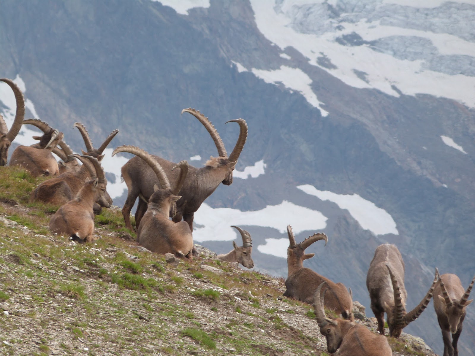 En este punto la TMB desciende hasta Les Chapieux para ascender por carretera hasta La Ville de Glaciers. En nuestro caso tomamos la variante de Le Col de Fours bastante más exigente que la primera. Una vez en el collado decidimos acercarnos hasta el Col de Tufs para casi rozar los 3000 metros. El macizo del Mont Blanc se oculta por las nubes pero podemos disfrutar de buenas vistas a ambos lados. También disfrutamos de la compañía de una manada de "bouquetin", cabras salvajes que acostumbradas a la presencia humana nos permiten acercarnos y posan ante nuestra cámara.
